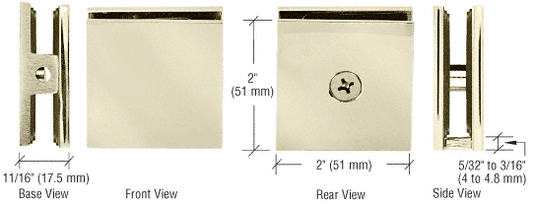 Square Style Fixed Panel U Clamp - Glass Clamp - 8mm to 12mm Glass - Polished Brass